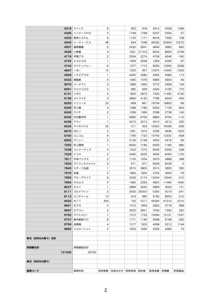 国内外の個別株式の評価額を月末時点で集計します。