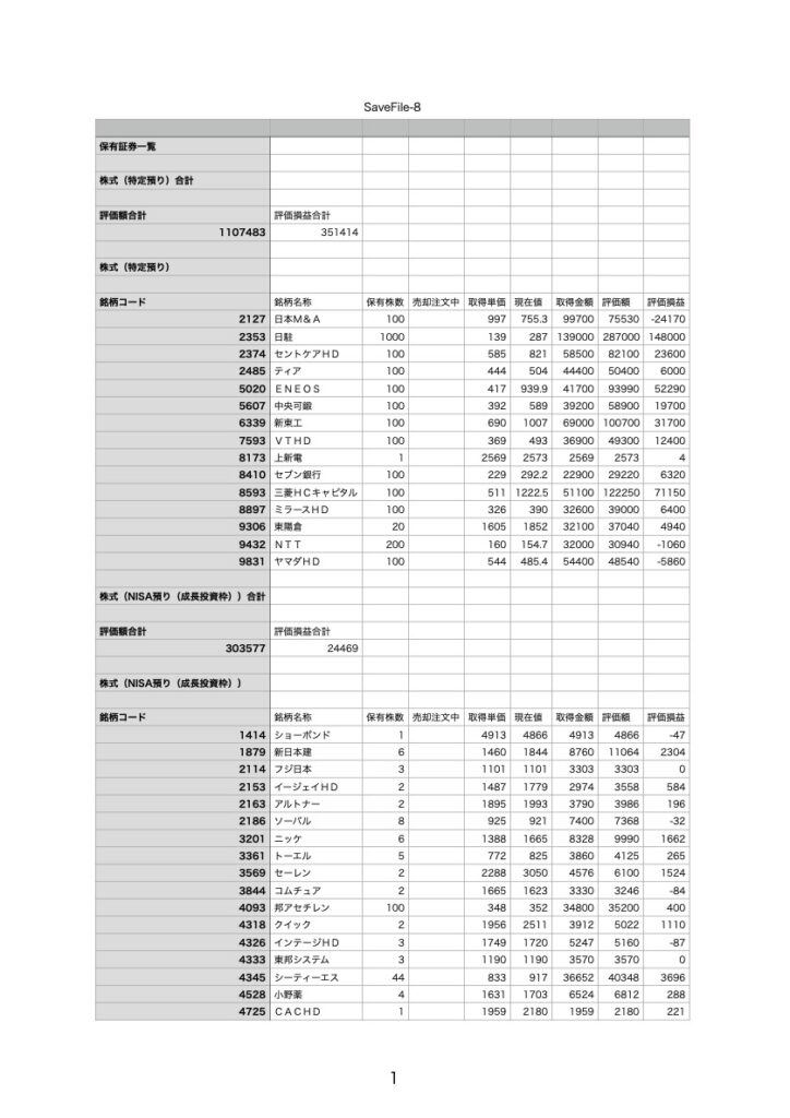 ① 個別株(特定口座+NISA口座)