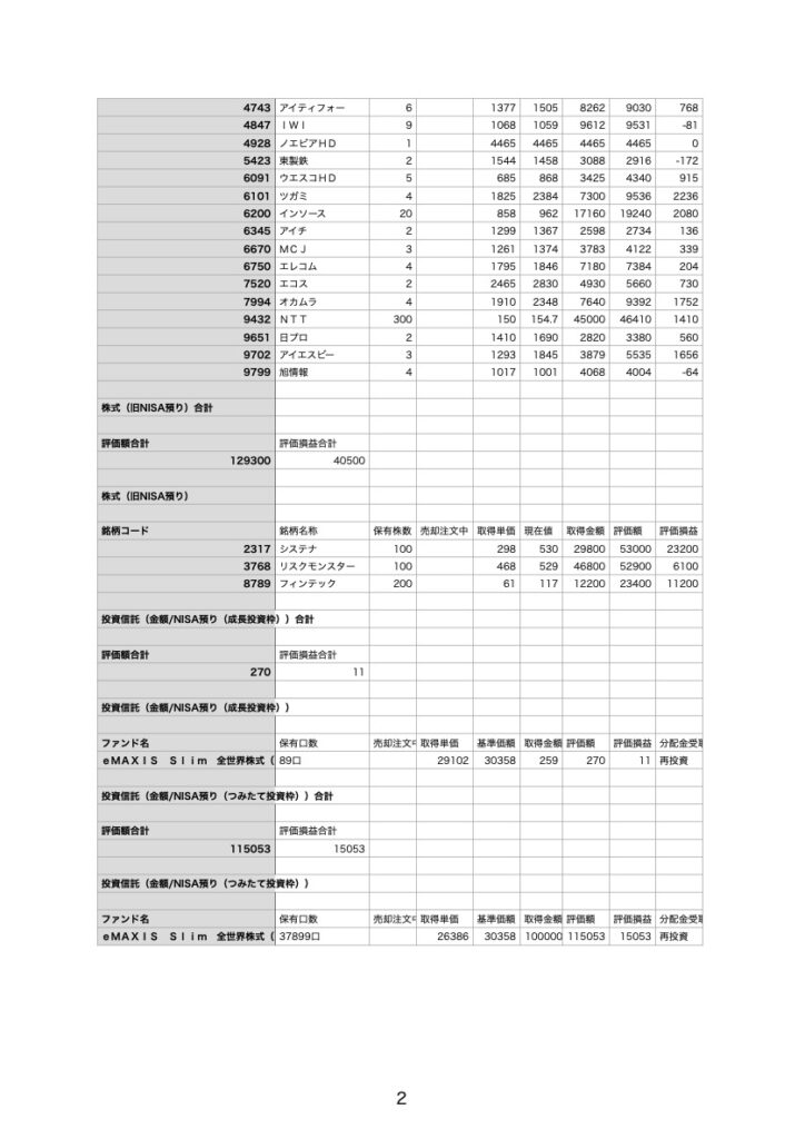 先月の定点観測内で触れた通り、NISA口座の積立投資枠内のS&P500は一旦現金化し、全てオルカンの積み立てに変更をしました。